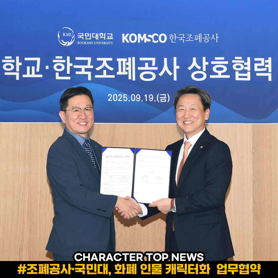 다섯 번째 뉴스는 조폐공사-국민대, 화폐 인물 캐릭터화 구상 업무협약 관련 소식 등 입니다.