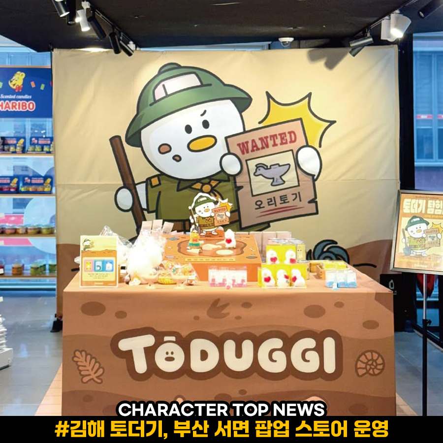 두 번째 뉴스는 김해 마스코트 토더기, 부산 서면 팝업 스토어 운영 중 관련 소식이고,