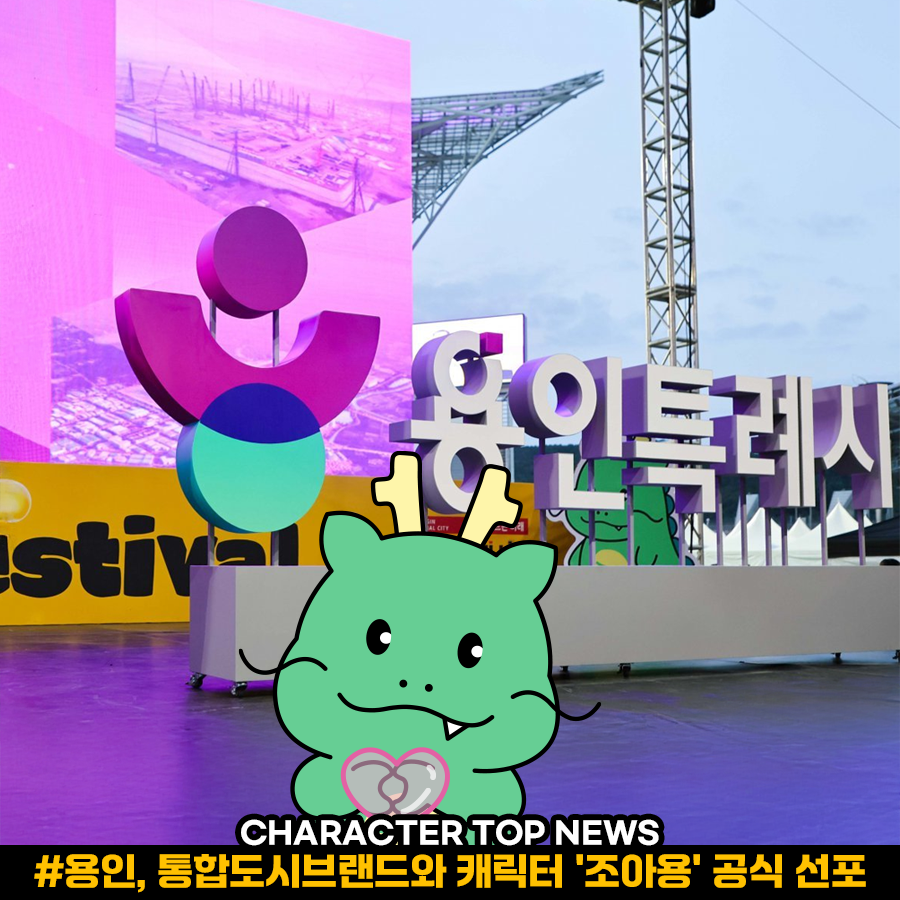 네 번째 뉴스는 용인시, 통합도시브랜드와 캐릭터 '조아용' 공식 선포 관련 소식이고,