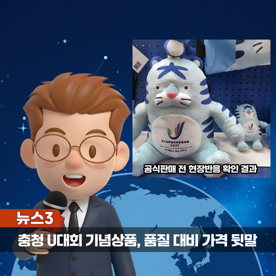 세 번째 뉴스는 충청 U대회 기념상품 가격 뒷말 관련 소식이고,