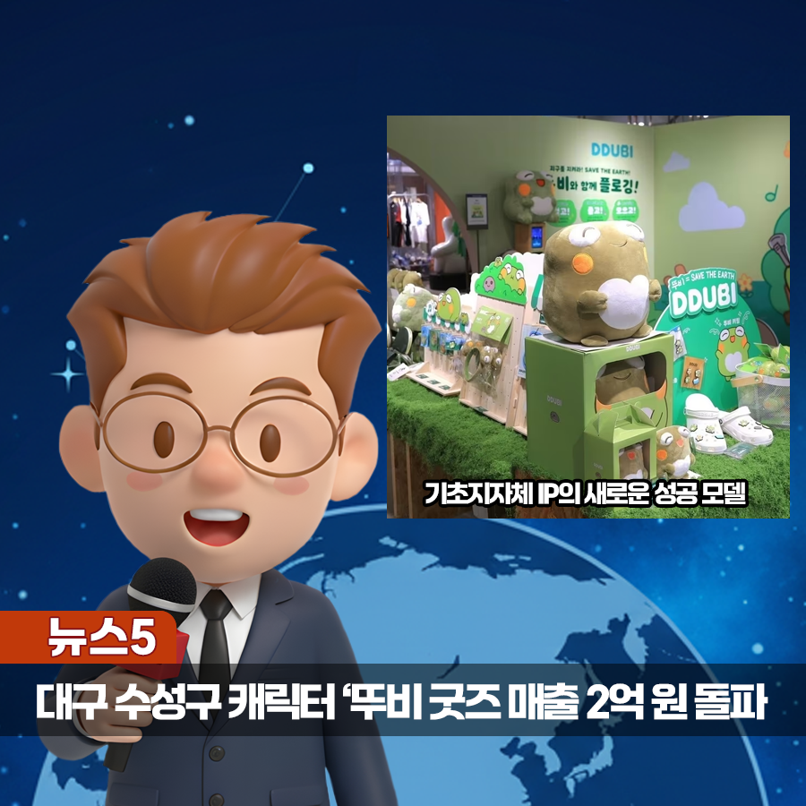 다섯 번째 뉴스는 수성구 캐릭터 ‘뚜비 굿즈 매출 2억 원 돌파 관련 소식 등 입니다.