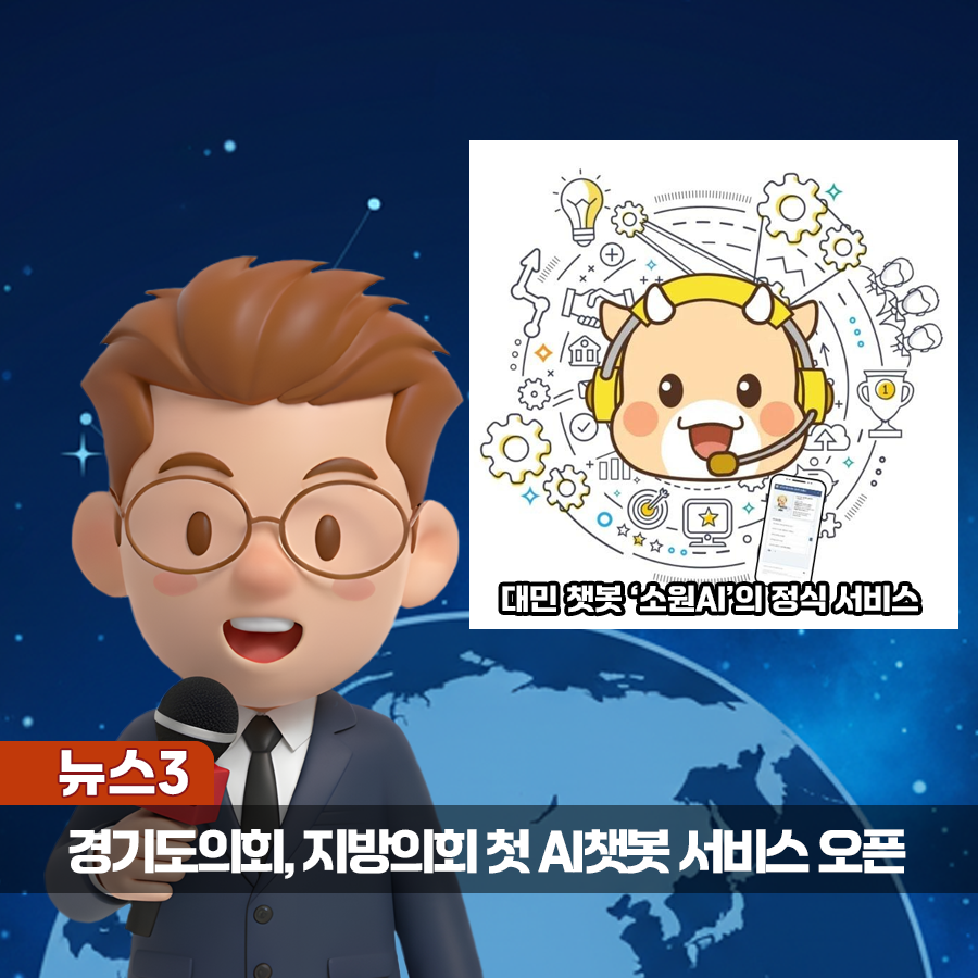 세 번째 뉴스는 경기도의회, 지방의회 첫 AI챗봇 서비스 오픈 관련 소식이고,