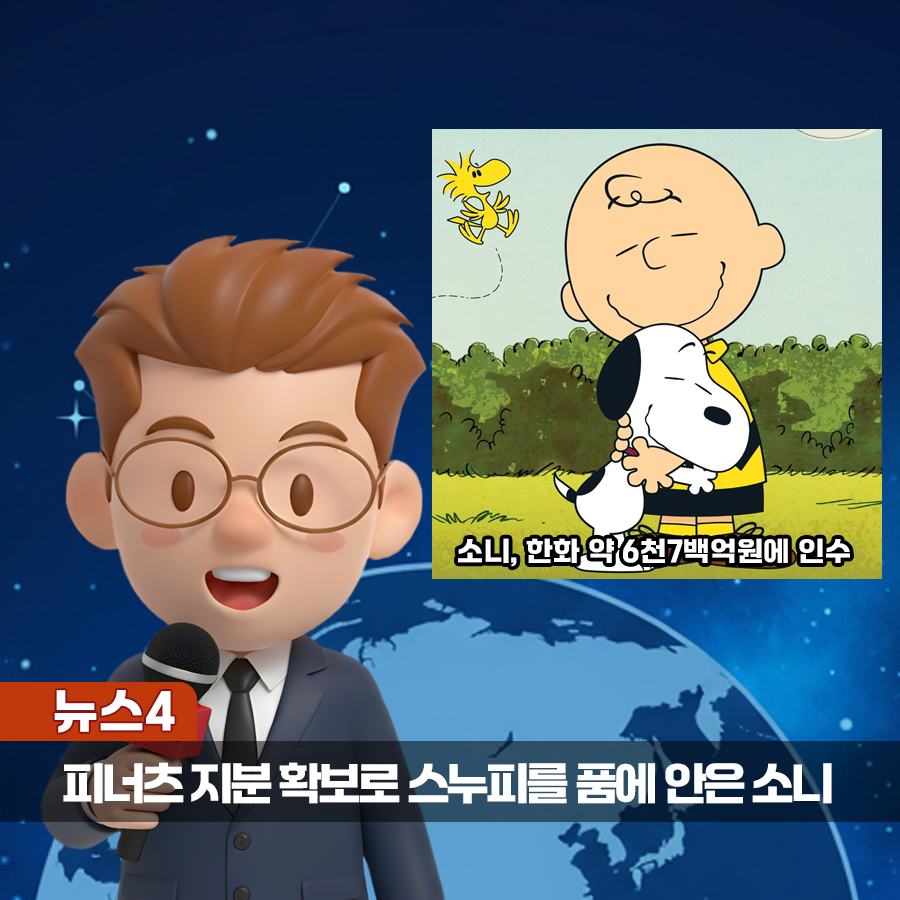 네 번째 뉴스는 ‘스누피’ 품에 안은 소니의 ‘피너츠’ 지분 확보 관련 소식이고,
