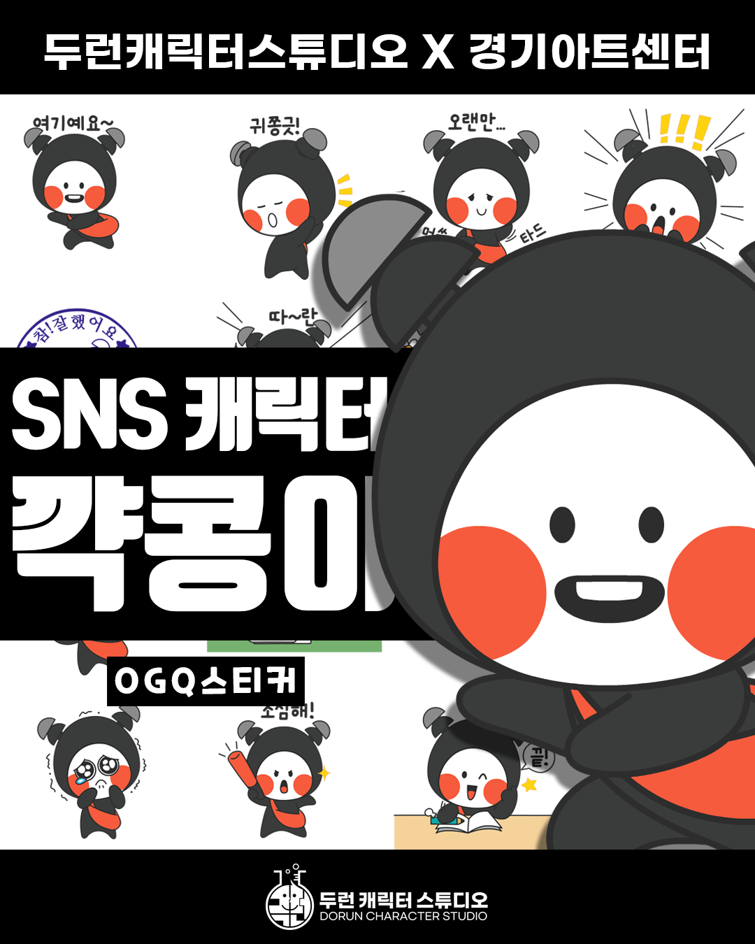 올 해 마지막으로 전하는 블로그 포스팅으로 가장 심혈을 기울였던 프로젝트이자 가장 화제였던 포스팅을 다시 한번 소개해 드립니다. 두런에서 경기아트센터의 꺅콩이 캐릭터를 활용한 네이버 OGQ 스티커(이모티콘)을 제작 하였고 무료로 배포되고 있으니 망설이지 말고 지금 바로 무료로 다운 받아 보세요!
