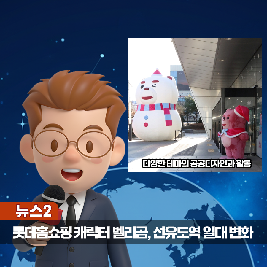 두 번째 뉴스는 롯데홈쇼핑 벨리곰, 공공 디자인으로 선유도역 일대 변화 관련 소식이고,