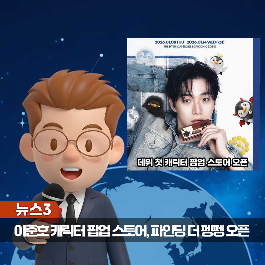 세 번째 뉴스는 이준호 캐릭터 팝업 스토어, 파인딩 더 펭펭 오픈 관련 소식이고,