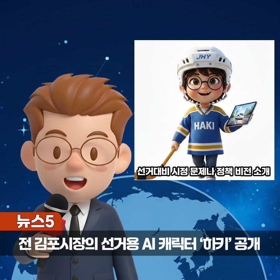 다섯 번째 뉴스는 전 김포시장의 AI 캐릭터 ‘하키’ 공개 관련 소식 등 입니다.